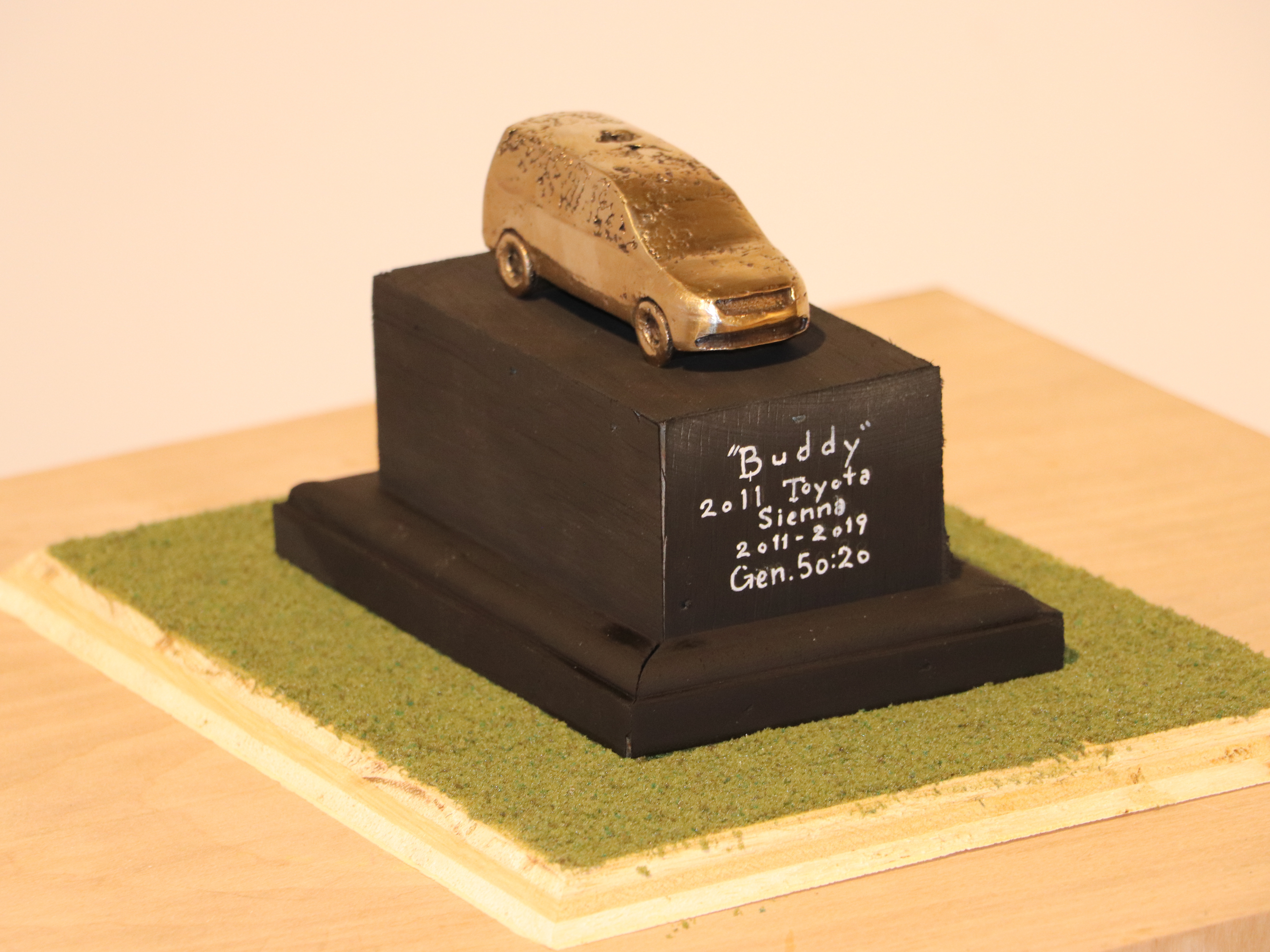 Cast bronze, wood, 12"x12"x6", May 2020